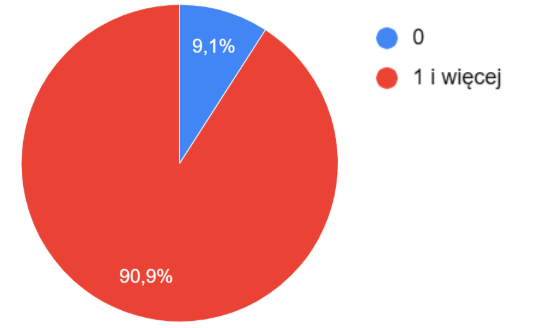 Rys. 7. Ile z jednostek pod opieką to jednostki INNE niż oddziały ogólnopsychiatryczne (np. oddziały psychogeriatryczne, oddziały detoksykacyjne, oddziały psychiatrii sądowej, ZOL, Izba Przyjęć, NPL, SOR) [odpowiedź “1 i więcej” jest agregacją kilku odpowiedzi]