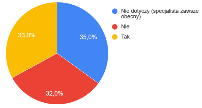 W badaniu 32% ankietowanych wskazało, że nie ma możliwości kontaktu telefonicznego z lekarzem specjalistą w razie jego nieobecności na terenie placówki. Co ciekawe, 33% zgłasza, że są u nich zorganizowane grafiki dyżurów telefonicznych, jednak mimo to w ⅔ przypadków nie można uzyskać pomocy od lekarza specjalisty.
