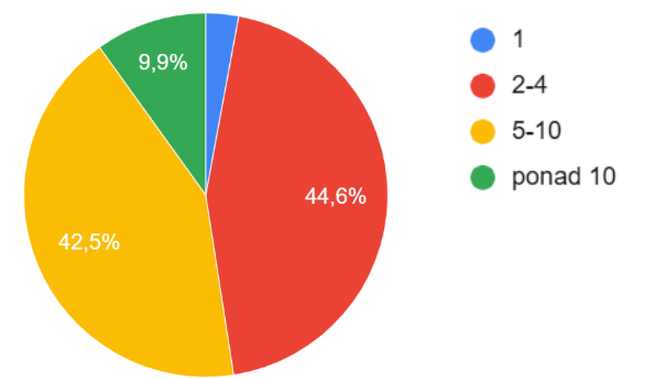 Rys. 5. Ile jednostek masz pod swoją opieką na dyżurze? (jednostka to każdy oddział, Izba Przyjęć, ZOL, NPL, SOR) [odpowiedzi “2-4” i “5-10” są agregacją konkretnych odpowiedzi wskazujących precyzyjną liczbę jednostek]